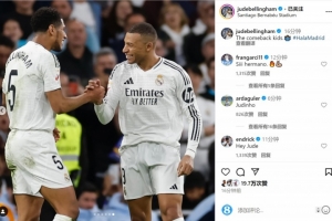 斩获进球!贝林厄姆晒与姆巴佩合照:逆转兄弟团♂️ xiaoqiao 2025年09月15日 17:45 112 0 体育资讯3月30日讯 西甲第29轮比赛,贝林厄姆打进一球,帮助皇马主场3-2逆转莱加内斯。 贝林厄姆社媒晒出与姆巴佩的合照,庆祝球队取胜,配文:“逆转兄弟团!Hala Madrid!”